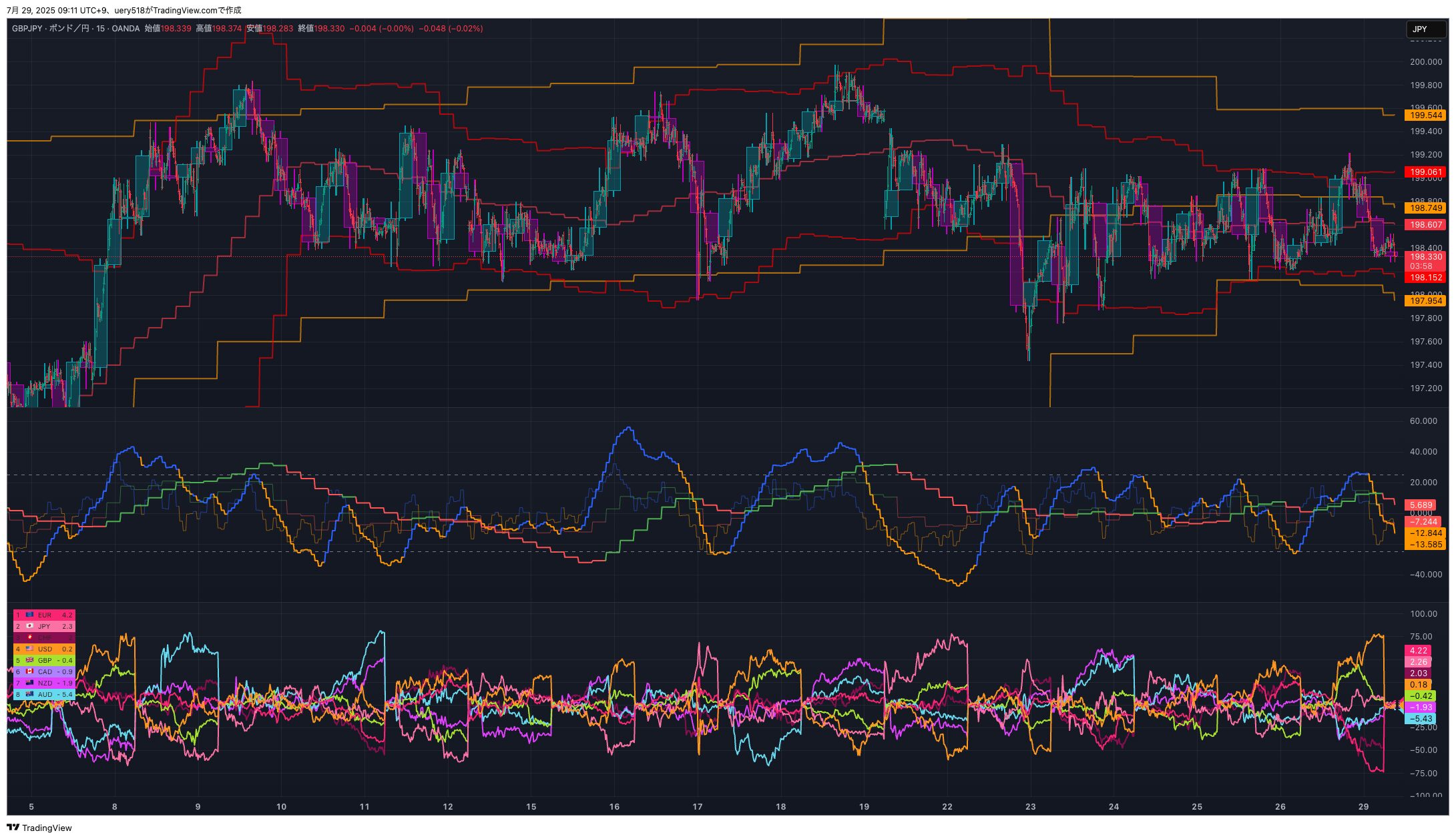 2025年7月28日トレード結果:+697円 トレード結果【日次】 X Facebook はてブ Pocket LINE コピー 2025.07.29 レンジ幅が狭くなってきたので早めに決済。どちらに動くか要注目。 対象通貨勝敗損益GBPJPY1勝0敗+1,092円GBPUSD0勝1敗-395円